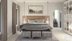 The master suite is thoughtfully separated from the main living areas, providing a private retreat. Its ensuite bathroom includes dual vanities, a soaking tub, a walk-in shower, a compartmented toilet, and a spacious walk-in closet. Bedrooms 2 and 3 share a Jack-and-Jill bathroom, while a centrally located laundry room efficiently serves all bedrooms.